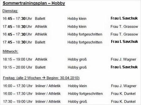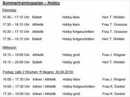 → Ab 11.05.2009 gibt es dann den Athletikplan,