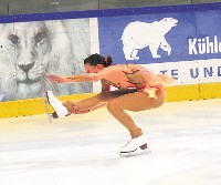 Sandy Hoffmann vom Dresdner Eislauf-Club in Erfurt beim „Thuringia Pokal“ gleich